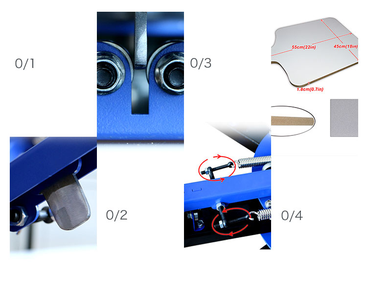 The machine's T-shirt tray is 55 cm (22 in) long, 45 cm (18 in) wide and 1.8 cm (0.7 in) thick. It adopts melamine high-density board on the surface of furniture, with small pits on the surface, which is more suitable for scraping pallet glue when printing T-shirts.