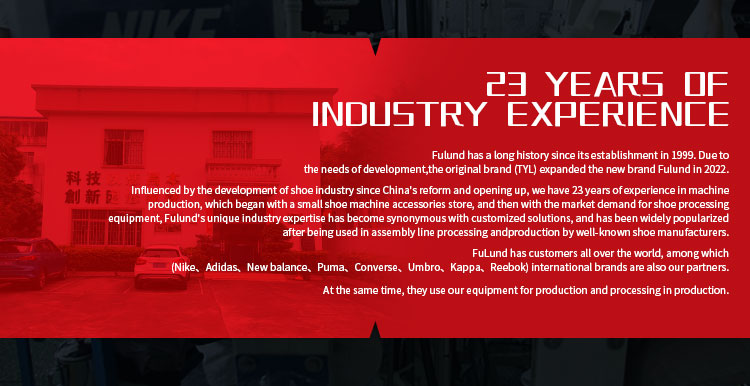 Since its establishment in 1999, Fulunde has a long history. Due to development needs, the original brand (TYL) will expand the new brand Fulunde in 2022. Flood has customers all over the world, such as international brand shoe manufacturers.