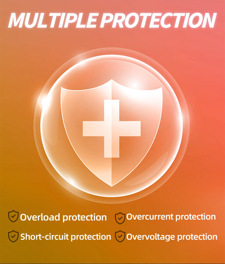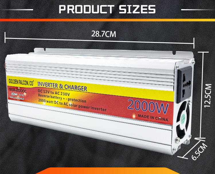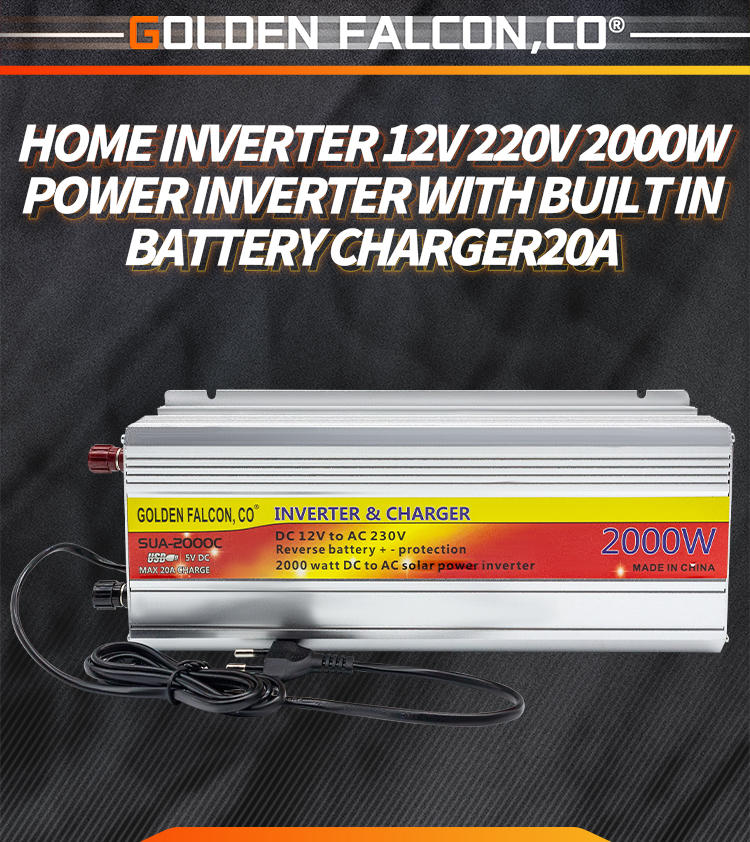 1. 5V 1A USB interface 2. Modified sine wave output3. New connection terminal screws 4. Built-in MAX20A charger5. High conversion efficiency, intelligent soft start function. 6. Input and output are completely independent 7. Smart, light and portable designhousehold. 8.Universal socket, suitable for various plugs 9. Suitable for resistive loads 10. High-precision voltage stability and aerospace-grade mute technology 11. The cooling and working status of the fan are intelligently controlled by MCU, which greatly prolongs its service life and helps to save energy 12. power consumptionMultiple security protectionIncluding overload/overvoltage/low voltage/high temperature and output short circuit protection. 13. 26 years of experience in the household power supply industry