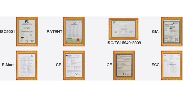 5. Our certificates (CE, E-mark, FCC, RoHS, ISO9001) and patents