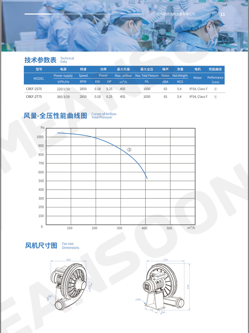 MEANSOON Ventilation CREF series plastic anti-corrosion centrifugal fans are specially designed and manufactured for deodorization systems, and are also suitable for discharging acid and alkali corrosive gases, water vapor and smoke. The impeller, volute, and bracket are all made of high-strength polypropylene, which has good chemical corrosion resistance. Suitable for pharmaceutical and chemical environmental protection equipment. All mounting bolts and nuts are made of 304 stainless steel. The motor shell is made of aluminum alloy, and the motor can be equipped with explosion-proof and frequency conversion