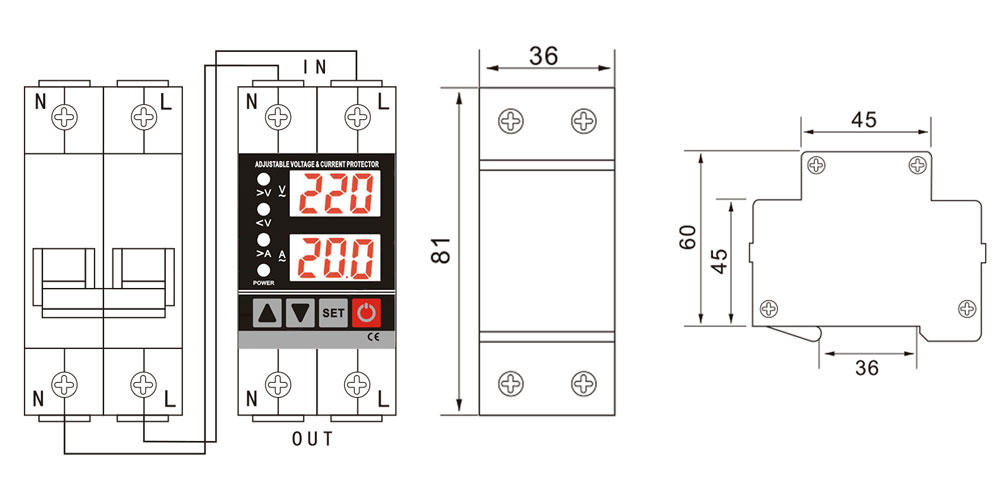 | >U and | 0 1-30 seconds | Working voltage range: | AC 80V-400V (single phase) |
