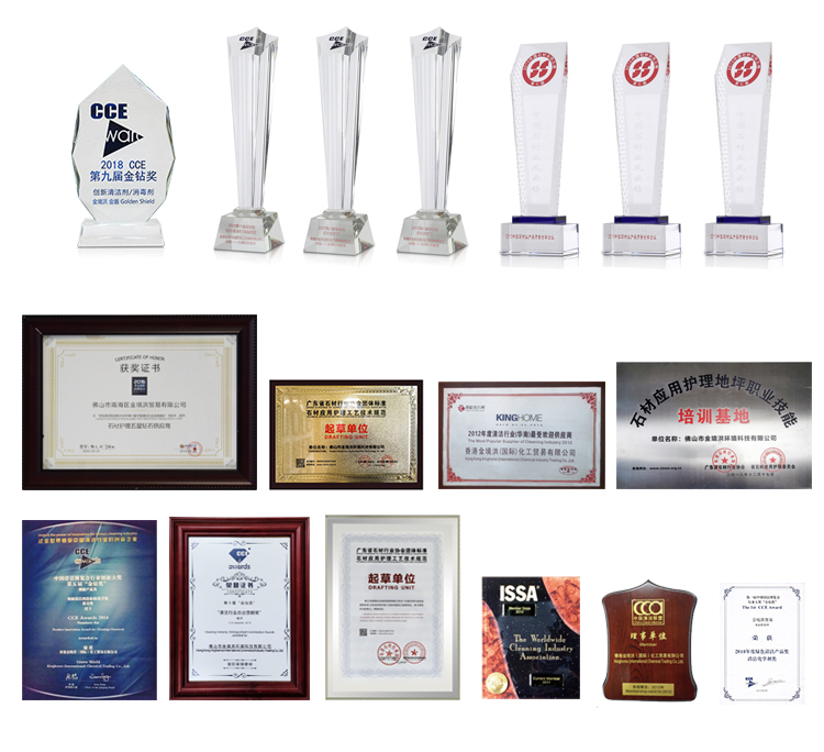In 2009, the first quality award of China Clean Expo - Gold Award and Green Product Award. In 2010, the National Stone Industry Chamber of Commerce and China Stone Media Alliance jointly issued "China Stone Product Quality Gold Award Enterprise" and "Stone Care Most Competitive Products". Joined Clean in 2010 Industry Association (ISSA), becoming a member of ISSA 2011 China Cleaning Alliance governing unit 2012 (South China) one of the most popular suppliers in the cleaning industry 2014 The 5th China Cleaning Innovation Golden Diamond Award for Cleaning Agents. In 2015, the 6th China Clean Gold Diamond Award was selected for innovation, excellent brand and user selection. 2016 Stone Care Five-Star Diamond Supplier 2018 2018 The Ninth CCE Innovation Golden Diamond Award.