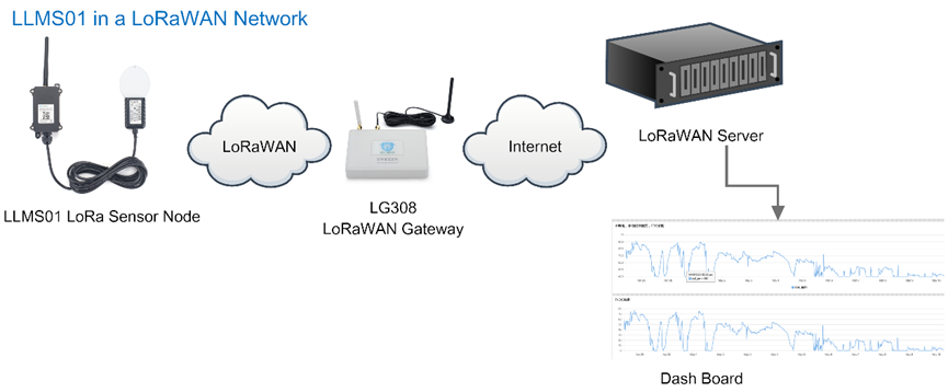 Each LLMS01 is preloaded with a set of unique keys for LoRaWAN registration, register these keys to the local LoRaWAN server, and it will automatically connect after power on.