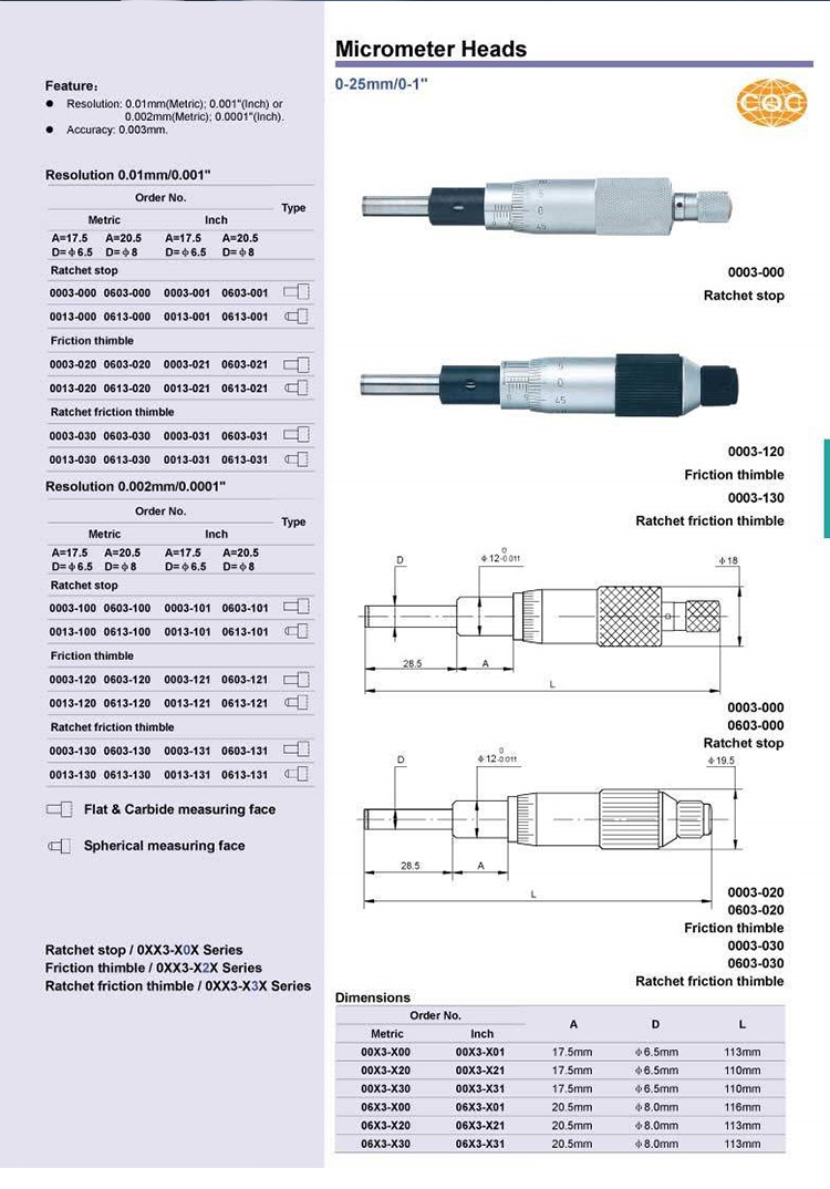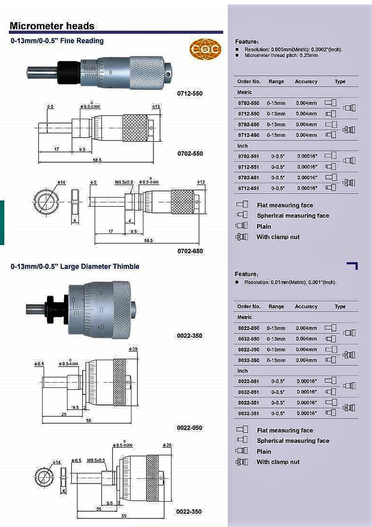 | product name: | micrometer head | Resolution (inches): | 0.00005" |