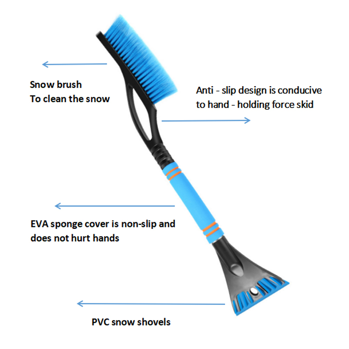 Features | ● Snow removal brush head: ABS high-strength plastic, PVC brush wire resistant to low temperature and not easy to break ● Snow shovel head: ABS high-strength plastic casting, hard and firm ● Handle design: EVA foam, good softness, anti-cracking in winter, no cold hands, high-quality aluminum rod inside the handle, high strength and good toughness ● Combination of shovel and sweeper, convenient and practical. | |||||||