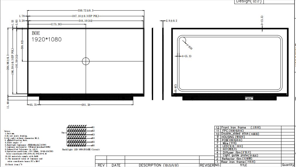 LCM mechanical dimensions (W*H*T) | 350.66*216.25*3 | mm |