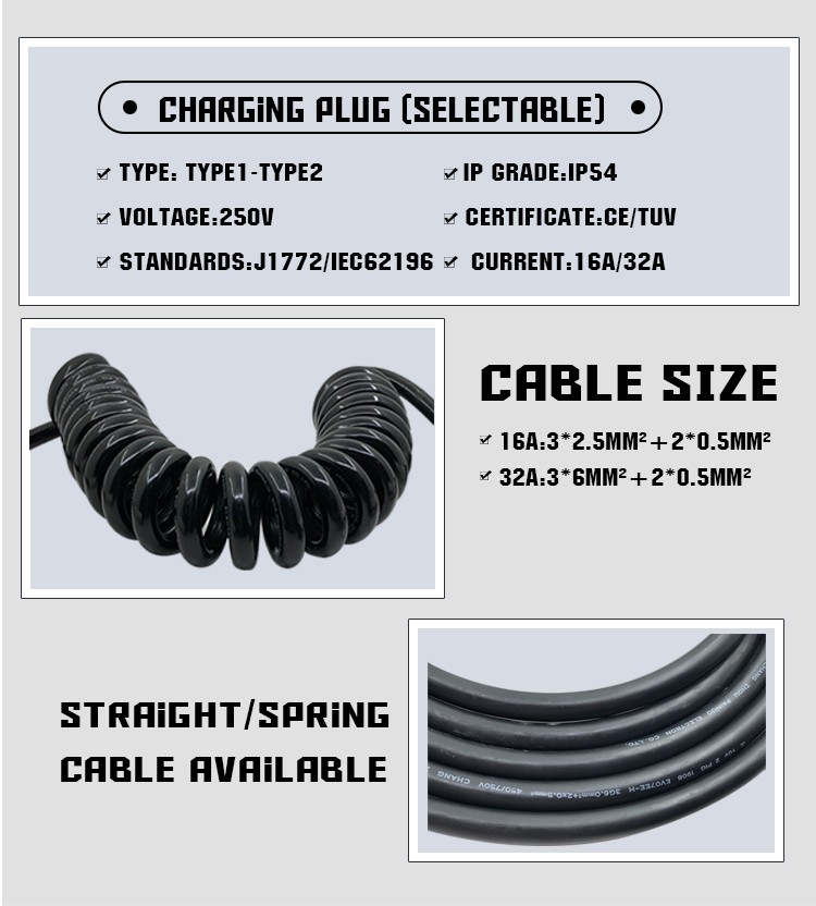 -Standard connector, can be correctly recognized by EV (with Type 1 inlet) and charged effectively.