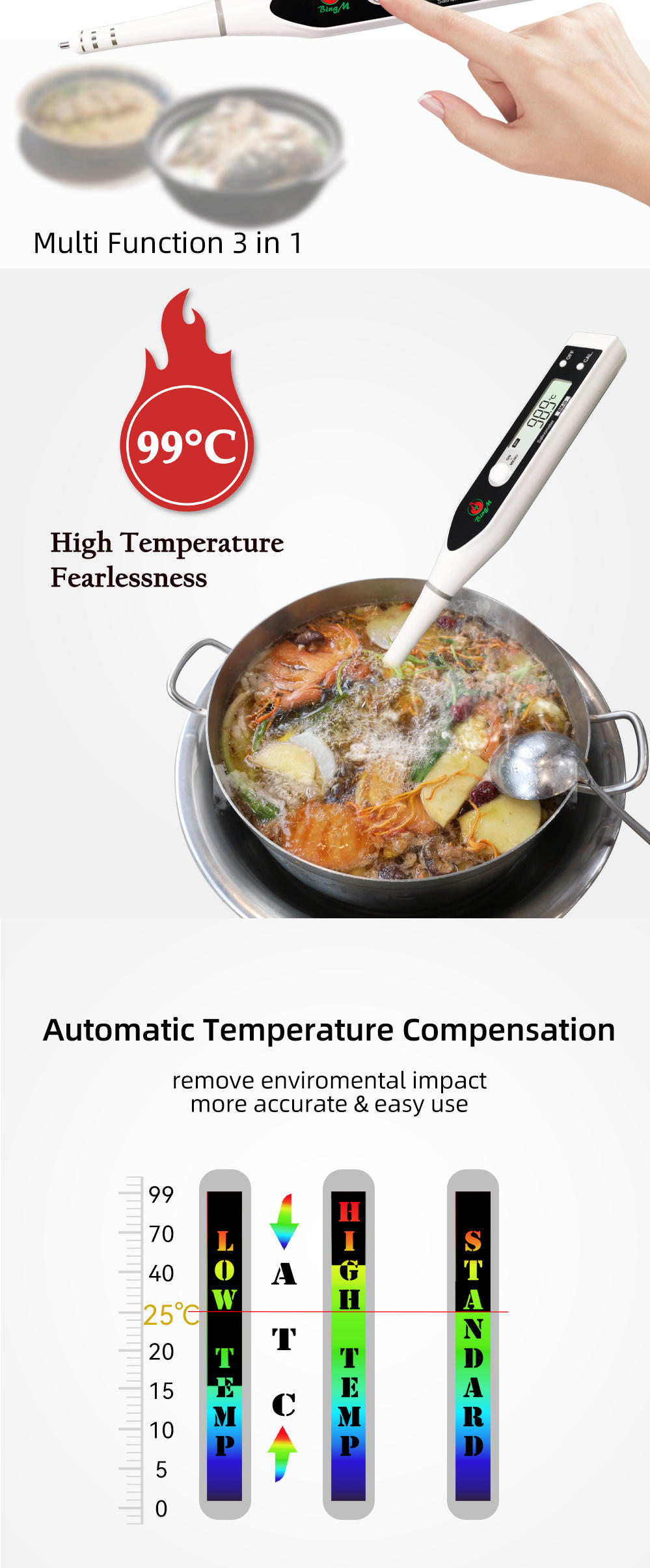 | Operating temperature: | 1-99°C | power supply: | 1.5V x 2EA (AAA type battery) |