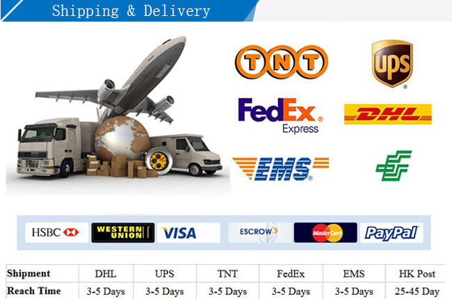 Shipping terms: | By sea, by air, by express (EMS FEDEX UPS DHL) |