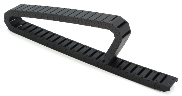 Energy chains are designed to surround and guide flexible cables and hydraulic or pneumatic hoses connected to mobile automated machinery. They reduce wear and stress on cables and hoses and prevent tangles.