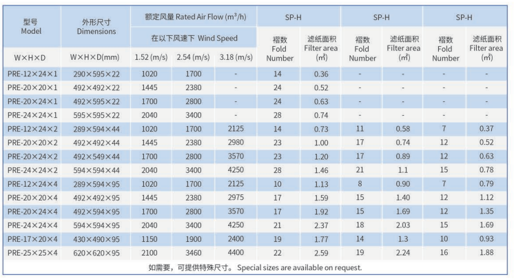 feature | BOM frame:paper frame Frame Optional Thickness:1 inch/2 inch/4 inch media:Cotton+synthetic fiber+screen+paper frame efficiency:G4 (EN779:2002 filter grade) MERV8 (ASHRAE 52.2:2007 filter grade) Applicable conditions Maximum temperature:70°C | ||||||