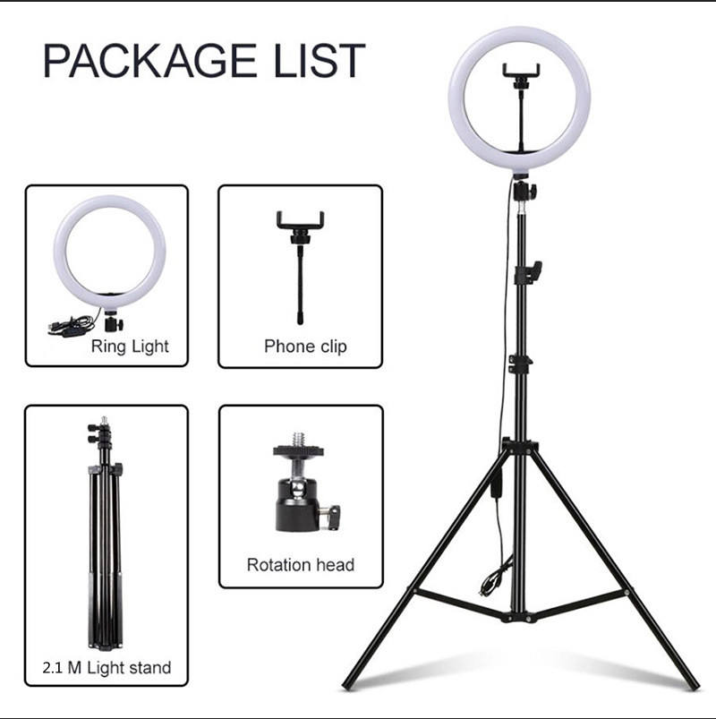 The price includes a set: 10 inch ring light 1 bracket, 2.1m adjustable tripod package