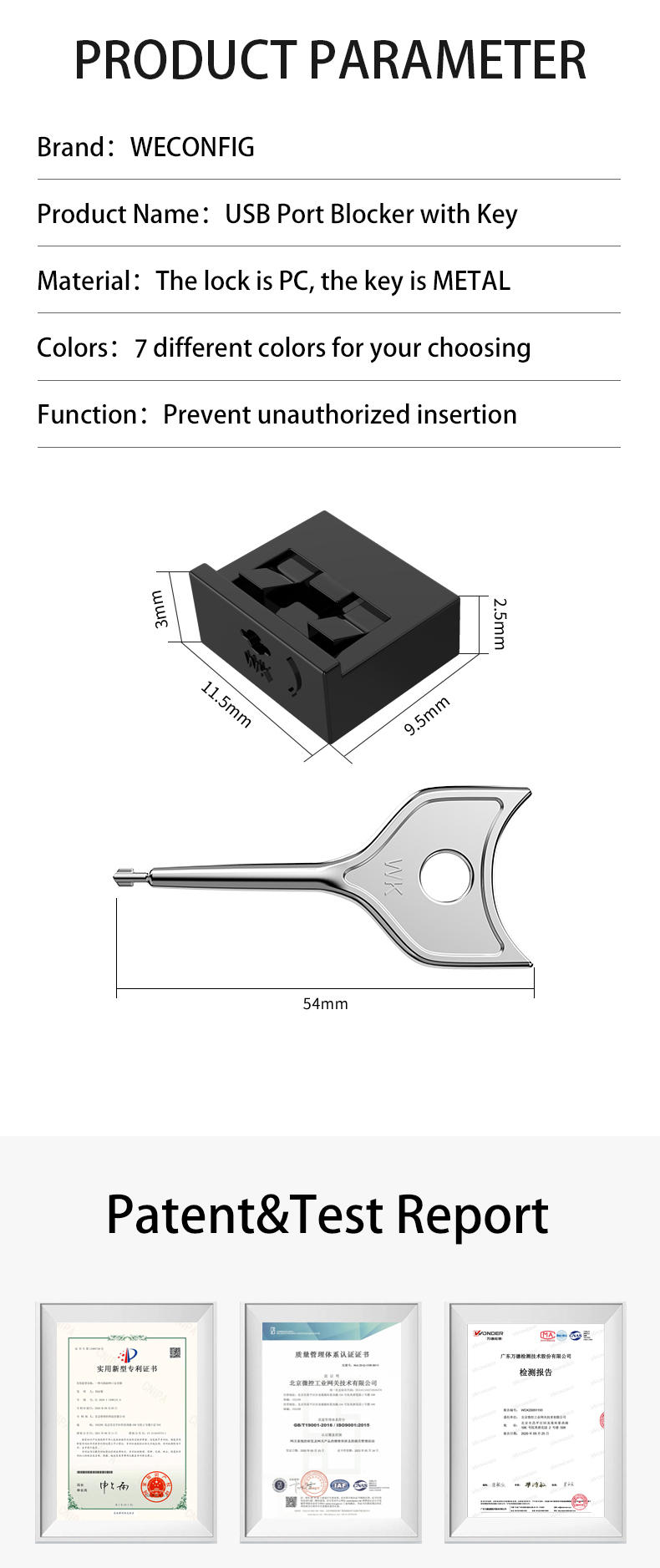 | product name: | USB port blocker with key | color: | Black&White&Red&Yellow&Green&Blue&Grey, 7 different colors |