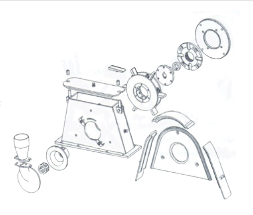 The blasting turbine consists of a disc, impeller, control cage and blasting blades. Jet blades can be straight, curved or trapezoidal.