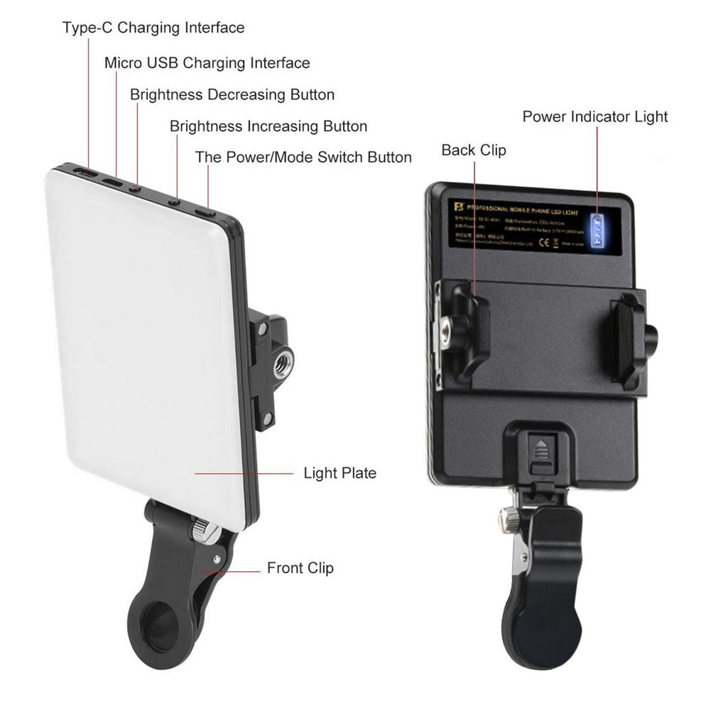 Universal Mobile Phone LED Light:This mini LED light board is equipped with front and back clips, suitable for almost all smartphones, such as iPhone X/8/7/7 Plus/6 Plus/6/6S...for Samsung, Huawei, Xiaomi, etc.
