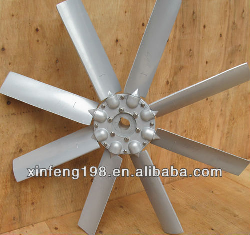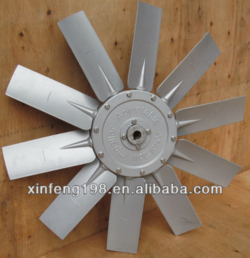The blade is a space-distorted wing blade with variable cross-section. The wheel shell adopts windless clips. The structure is aluminum alloy precision die-casting. The blade is positioned by the clamping wheel shell, and the blade is fixed in the casing by the clamping wheel. It can be adjusted according to the user's needs, and the blades can also be adjusted to make the blades generate reverse airflow to meet the needs of reverse ventilation. It can be divided into positive and negative blade symmetrical forward and reverse ventilation. There are six kinds of blade installation angles from 15° to 40°, which can be adjusted statically and steplessly.