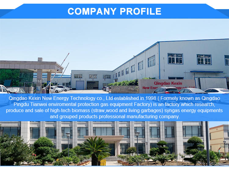 Qingdao Kexin New Energy Technology Co., Ltd. was established in 1998 (Pingdu Tianwei Environmental Protection Gas Equipment Factory), located at No. 71, Hong Kong Road, Pingdu City, Qingdao City. It is a high-tech biomass syngas power generation equipment and its supporting products integrating equipment research and development, production and manufacturing, sales and operation, and export trade. Since its establishment 20 years ago, the company has been adhering to the business philosophy of "integrity", "innovation", "professionalism" and "pragmatic", and is committed to the development and research of biomass energy. Aiming at the new functions and characteristics of new energy materials, biomass materials, we have successfully developed the KX series of biomass gasification equipment and syngas power generation products: JXQ series (simple type), KX series (downdraft fluidized bed type) ) Biomass gasification equipment, KX series biomass synthesis gas power generation system, special hot air stove for biomass synthesis gas, biomass raw material drum dryer, biomass crusher, drum drying equipment, dust collector and other products. The complete set of biomass gasification power generation equipment has obtained a number of national invention patents and utility model patents. KX series fluidized bed biomass gasification equipment has passed the EU CE certification, and has been exported to the United States, Italy, Japan, South Korea, Switzerland, Russia, Singapore and other countries with high requirements for equipment quality and environmental protection quality, etc. Our company is committed to meeting the needs of customers all over the world and providing customers with higher quality after-sales services. With the basic principles of "reasonable price", "high-quality products", "punctual delivery" and "good after-sales service", we sincerely look forward to cooperating with friends at home and abroad to develop and make progress together to create a win-win situation. future.