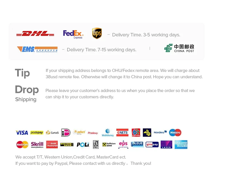 A: T/T 30% as deposit, and 70% before delivery. We'll show you the photos of the products and packages