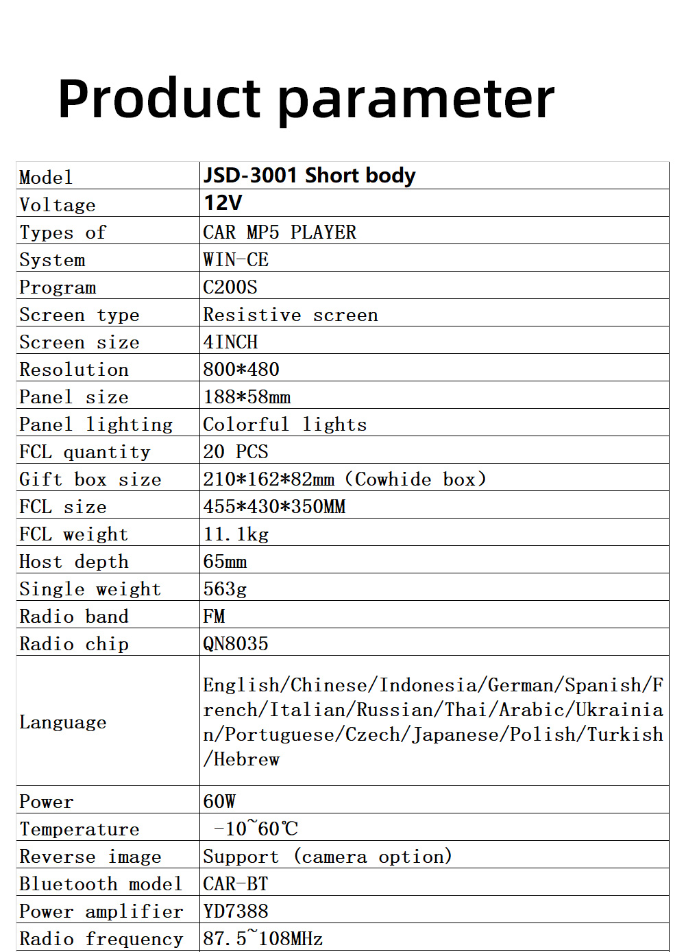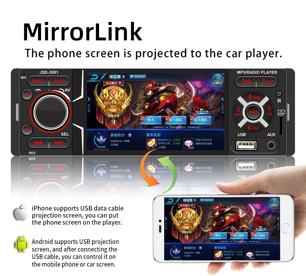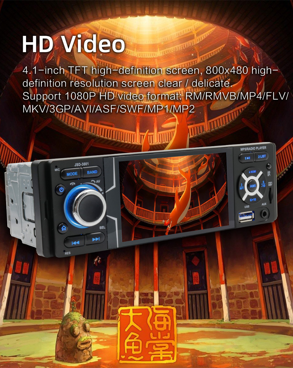 | Function: | Stereo, Handsfree, RGB, Remote, Amplifier, Mirror Link | model: | JSD-3001 |