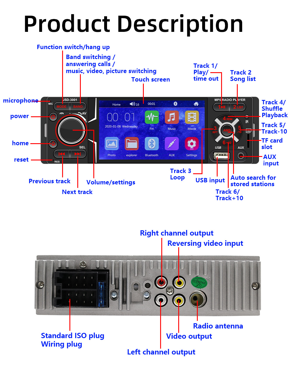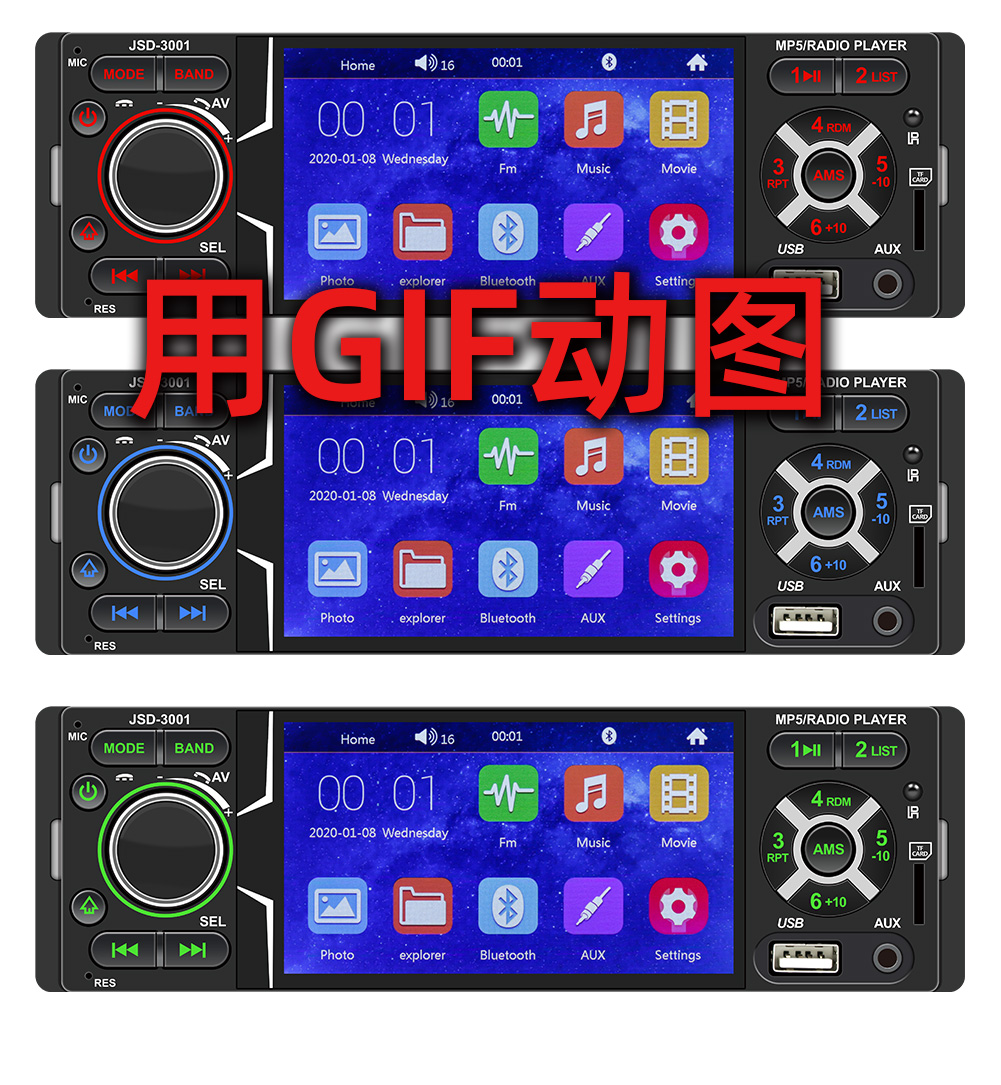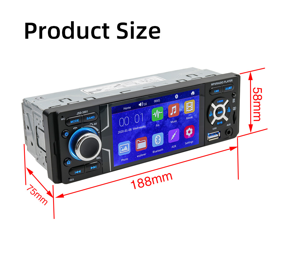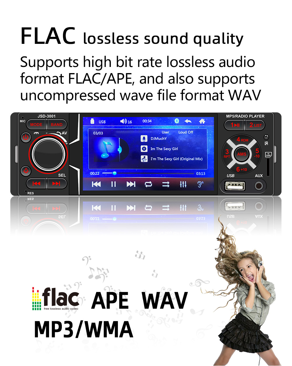 | Function: | Stereo, Handsfree, RGB, Remote, Amplifier, Mirror Link | model: | JSD-3001 |
