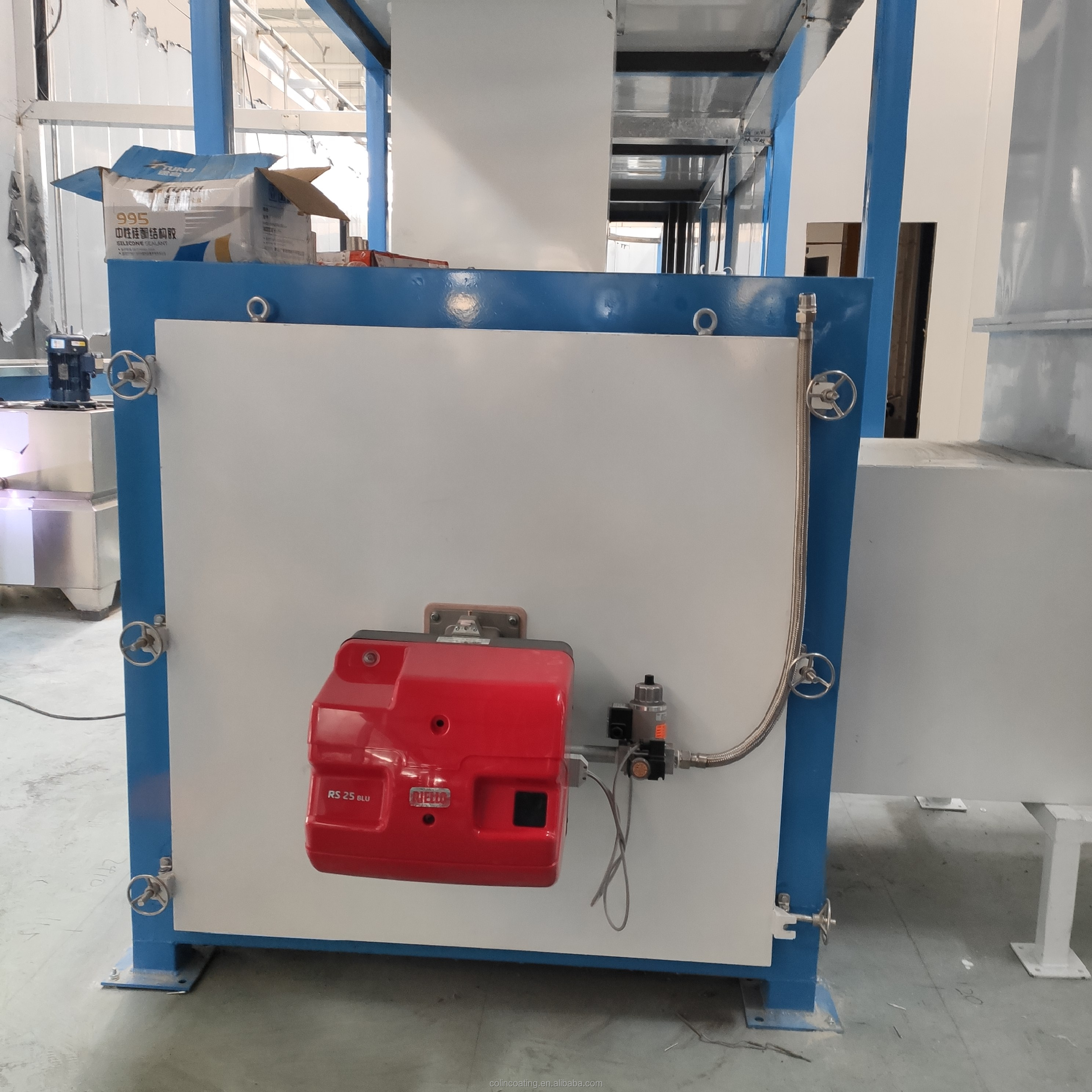 Colin-330 is a gas heating oven with Riello burner, mainly made of 150mm rock wool steel plate, whose edges are made of colored cold steel. All materials are made of high-quality materials and good bending and welding techniques.