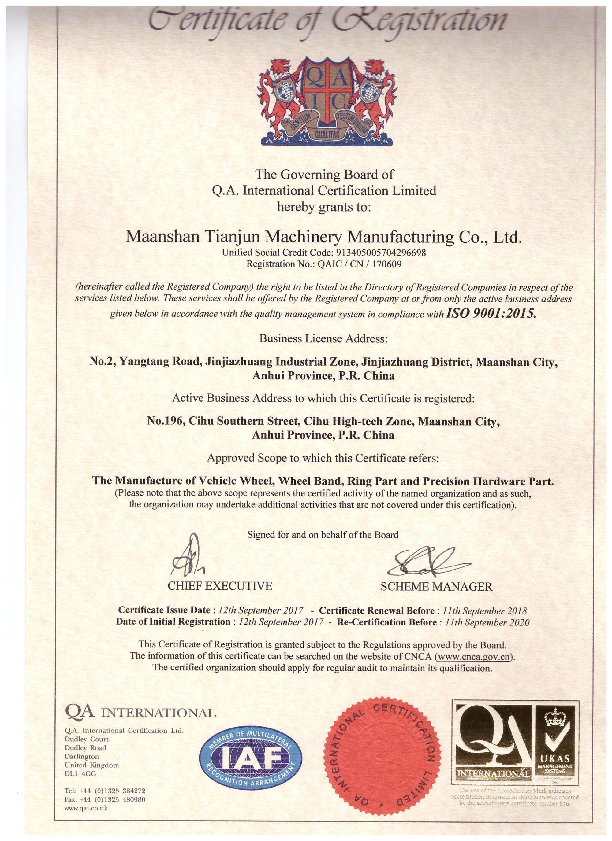 Ma'anshan Tianjun Machinery Manufacturing Co., Ltd. was established in 2005. The research and development investment accounts for 7.7% of the total sales revenue, and the sales revenue of research and development products accounts for 38% of the total sales revenue. The company is a high-tech enterprise specializing in the production and production of track wheels and technology research and promotion. It is a high-tech enterprise integrating R&D, production, marketing, technical services, and warehousing and logistics.
