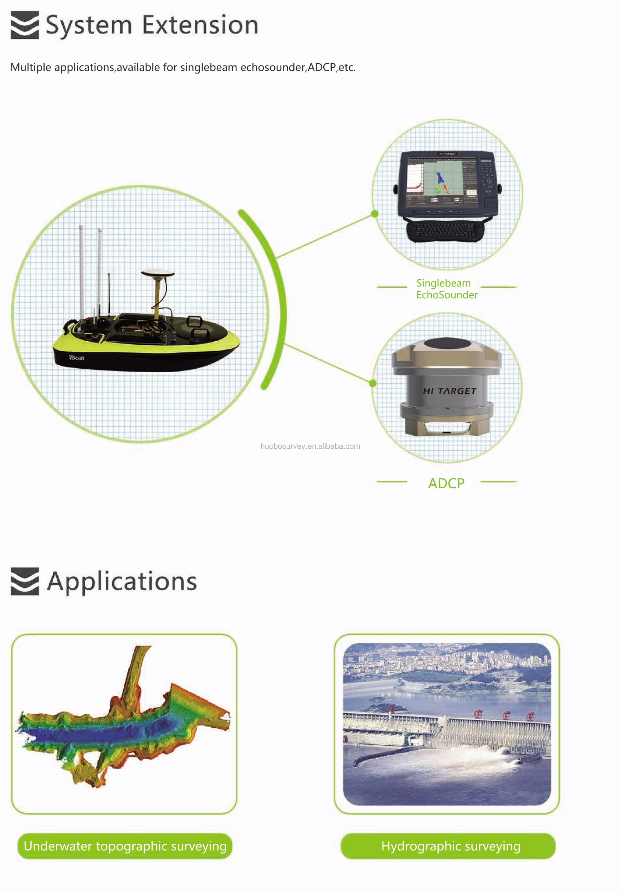 The Hi-Target iBoat series of unmanned surface vehicles have a solid hull design and a protected ducted propeller, providing a new option for high-resolution shallow water hydrographic surveys. The iBoat series of unmanned surface vehicles are equipped with multiple sensors, which can be controlled remotely and positioned with the help of satellites. The agile body of the iBoat series of unmanned surface vehicles can approach near-shore terrain that cannot be achieved by traditional methods, safely and avoid expensive charter costs. All data is transmitted synchronously via the wireless bridge, allowing surveyors to easily and comprehensively manage operations.