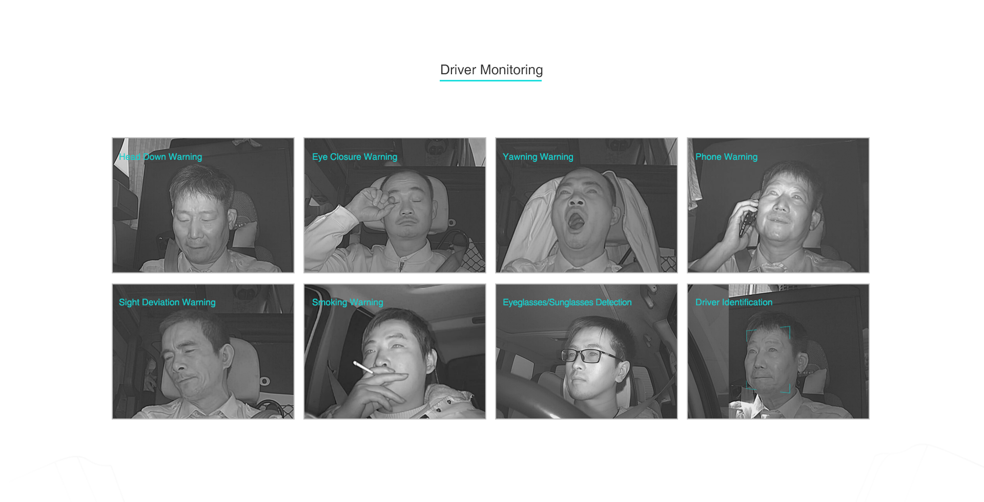 Supports detection of roads, vehicles, drivers, etc., including lane departure, following vehicles too closely, frequent line pressing, sharp turns, fast start, fast stop, driver fatigue/distraction, etc.