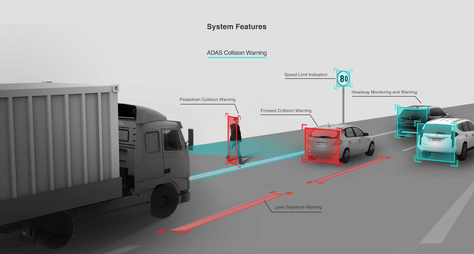 Supports detection of roads, vehicles or drivers, etc., and will issue a warning when the system detects a potential collision risk.