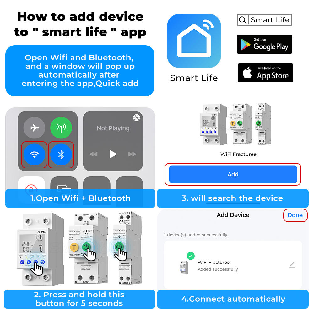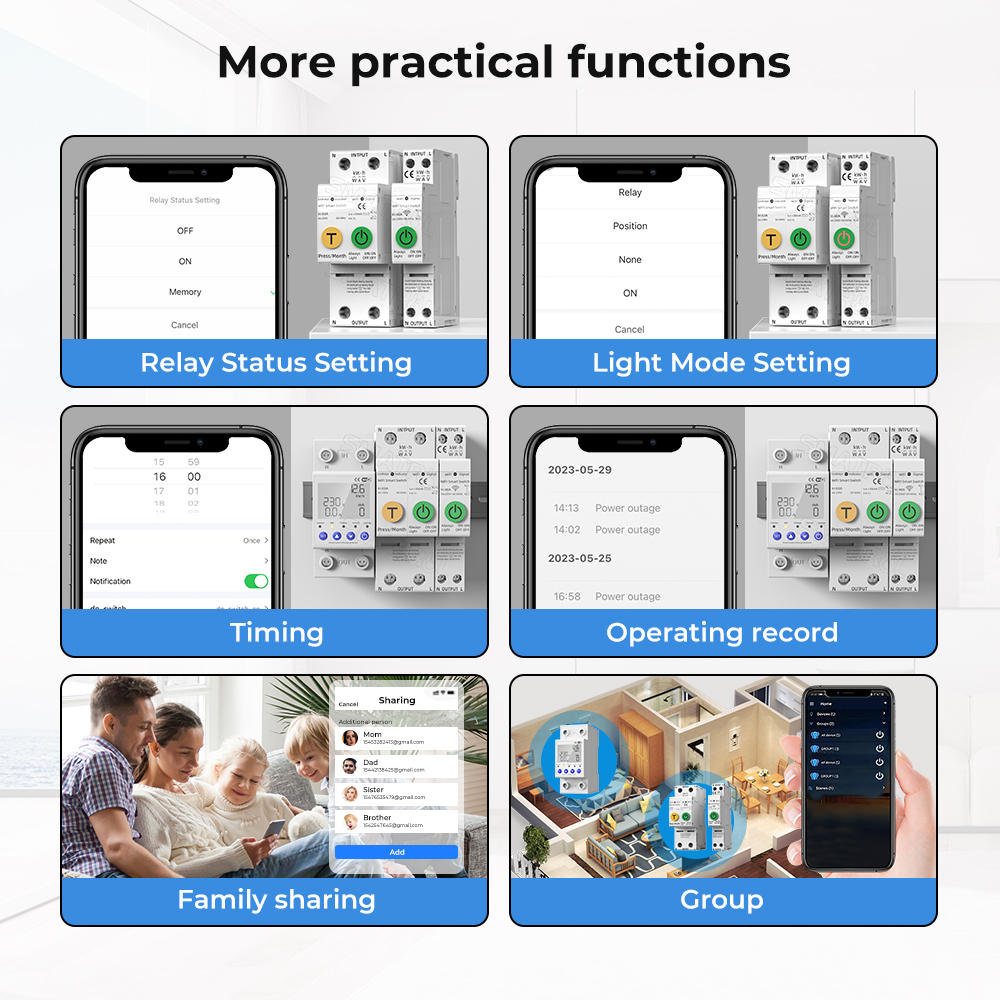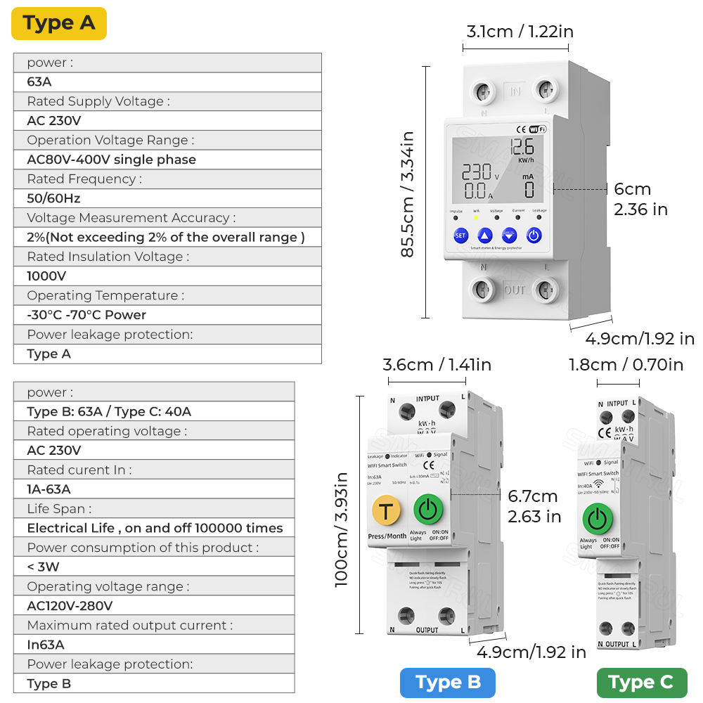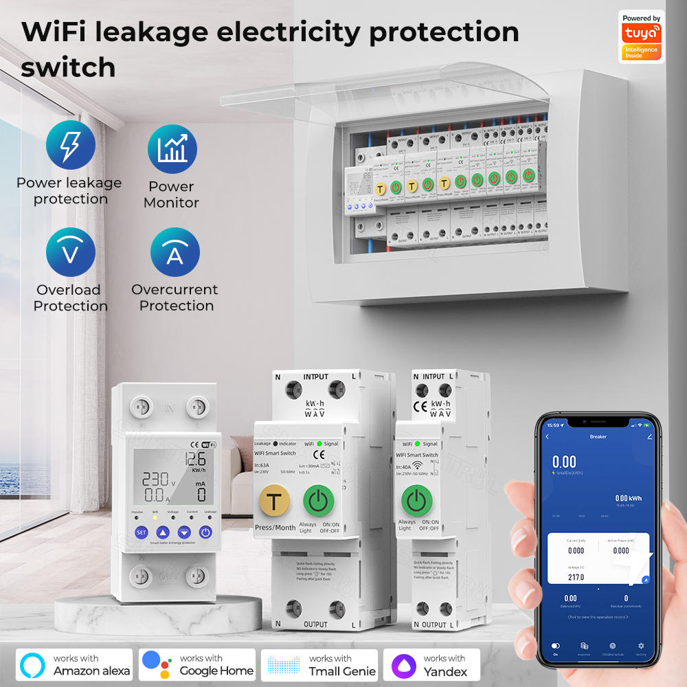 --[Applicable scenarios] Wifi smart recloser circuit breaker can be widely used in intelligent remote control of homes, factories, student dormitories, farmland, municipal engineering, water pumps, water heaters, floor heating equipment, etc. --[Mobile phone control]] Remotely through mobile phones anytime, anywhere Control switch machine. --【Electricity Statistics】View energy reports to properly track energy usage in your home. Know which appliances use the most energy and make a plan to save energy and electricity bills. --[View phone] View current, voltage, leakage current, and total power through the mobile app. --【Voice Control】The smart plug can work with Alexa, Google Assistant, Tmall Genie, Yandex supported devices for easy voice control. --【Set Timing】Turn on and off the connected device at the specified time. --【Countdown】Set the countdown function and turn off the device. (Section B and C are supported) --[Manual setting] Overvoltage/undervoltage/overcurrent/leakage current can be set in the App. (Type A and Type B are supported) --【Leakage Protection】Automatically trip after leakage to protect your safety. Leakage value can be adjusted to 30ma-100ma. (A type, B type support) --[overvoltage protection] 30v-100v (adjustable) (default: 30) --[overcurrent protection] 1a-63a (adjustable) (default: 30a) --[backlight Option] You can set the backlight status to ensure that the switch light does not affect the rest during rest (support B, C models) -- [power failure memory function] don't worry about power failure, the device will remember the last state after power on again. (Sections B and C are supported)
