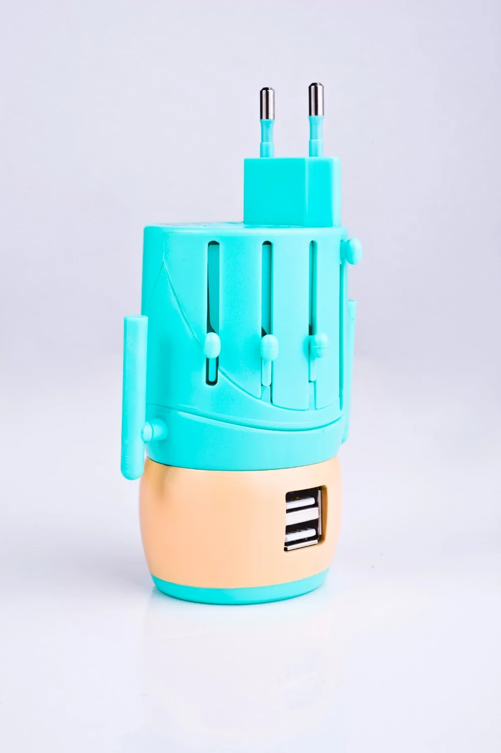 All-in-one worldwide plug with AU, US, UK, EU standards and universal AC socket works with voltage in from 100~240V