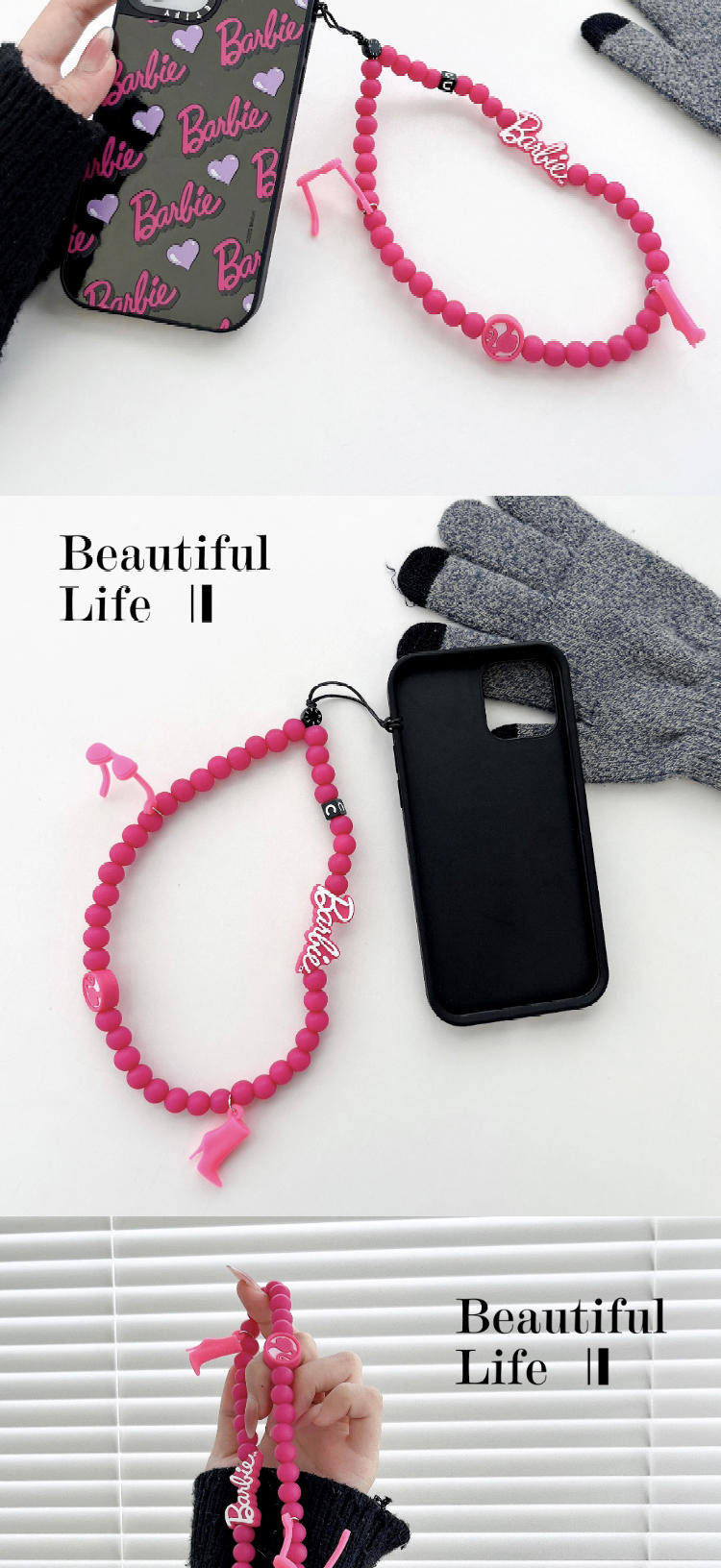 JOJO Fashion Insta Hot Sale Barbie Pink High Heels Glasses Pendant Beaded Phone Chain Women