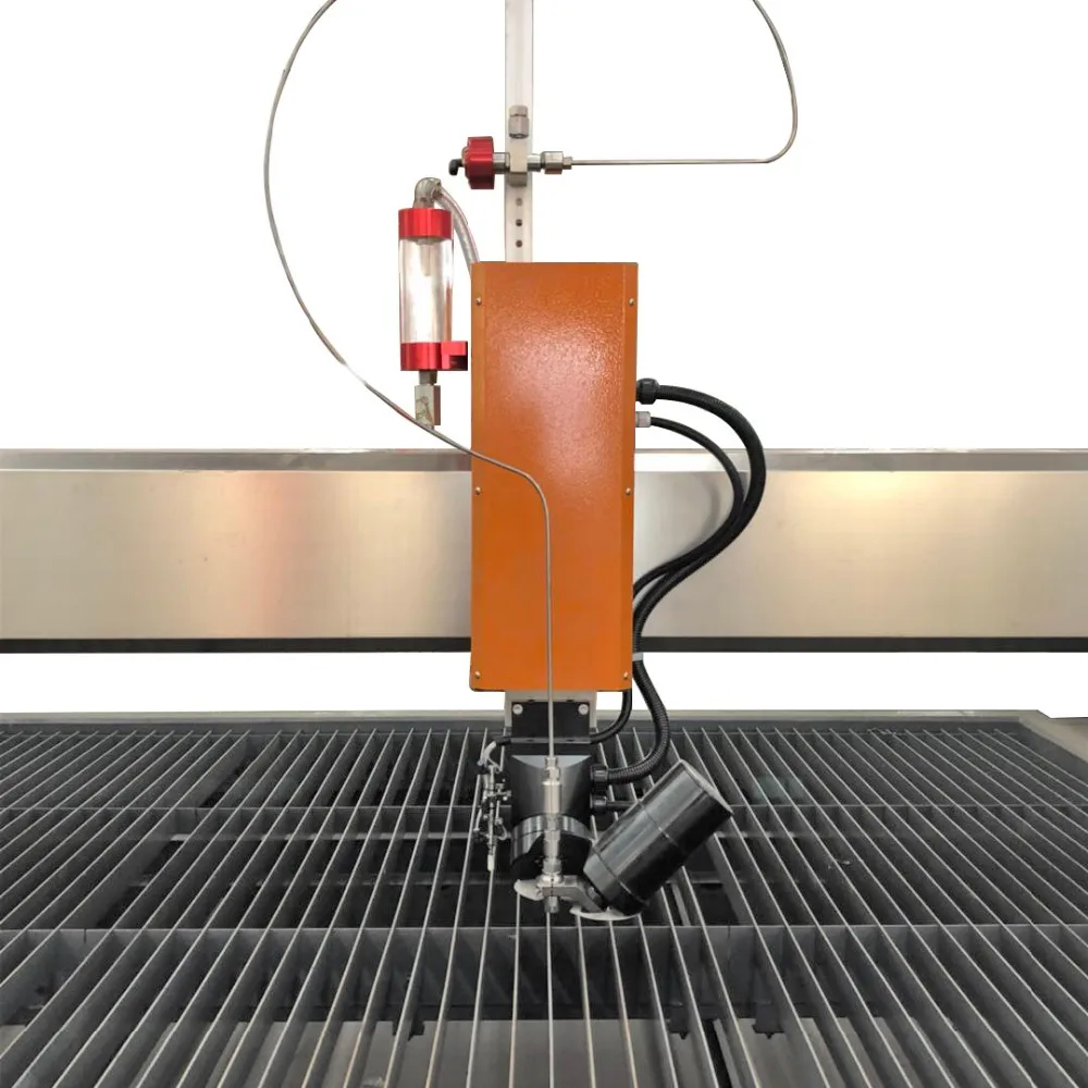 5Aixs CNC water jet cutting has broken the limitation of traditional water citting only can do vertical or small-angle cutting,and broken the limitation of traditional cutting only can adjust the cutting angle manually, Based on traditionel 3axis, it addtwo servo rotating axis, which achiene a fully automatic, a direction linkage cutting. And also can achieve time molding ofcomplex shaped parts, which eliminetes the cost of making molds.