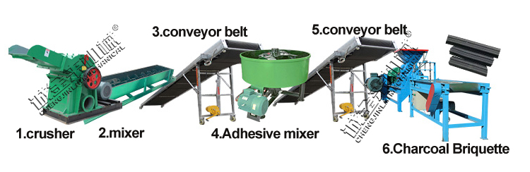 The charcoal briquetting machine is the most important equipment in this production line. Can produce a variety of shapes you want, such as cylinders, square columns, hexagons, squares, etc.Drying equipment: