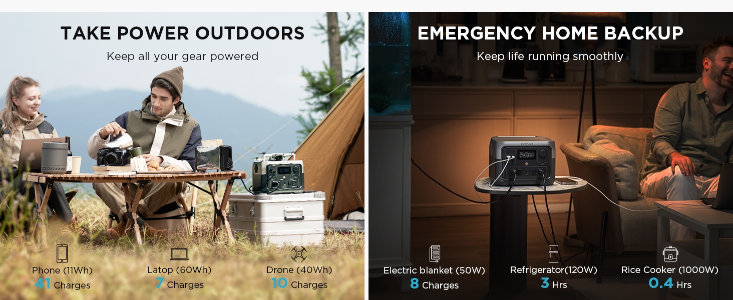 RIVER 2 Max has the fastest charging speed in the industry, charging from 0% to 100% in just 60 minutes. Fully charge your RIVER 2 Max while you're packing so you're always ready for last-minute trips.