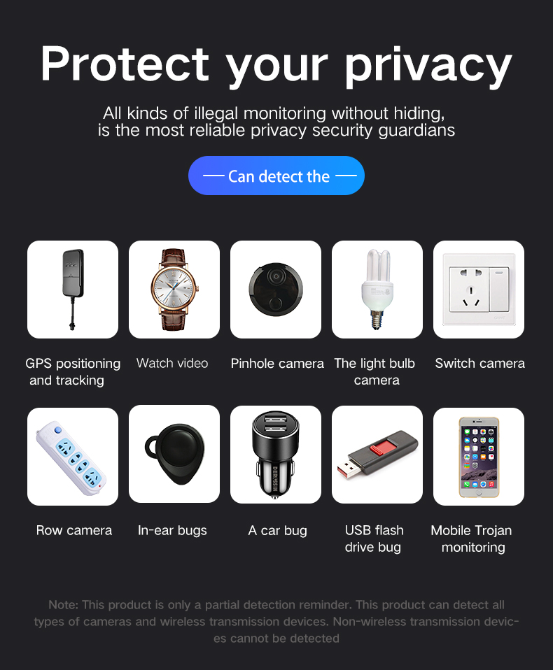 Function | Easy to operate, high detection speed, 4-level sensitivity adjustment, anti-location, anti-monitoring, anti-camera anti-tracking. |
