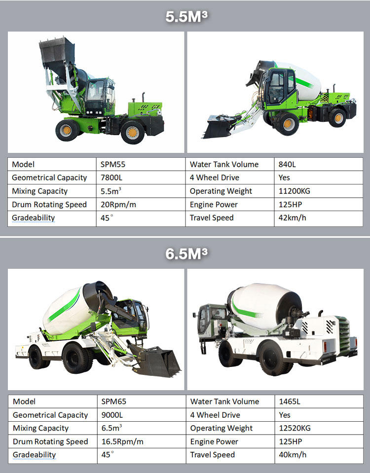 SPM55 | 5.5 cubic meters | 11200 kg | 125 hp | 8450*3100*4580mm |