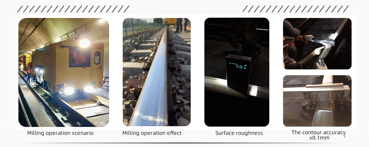 The series of rail grinding machines produced by the company can meet the needs of different users at home and abroad to the greatest extent, and have completely independent intellectual property rights. They can mill rails efficiently, eliminate rail defects, and greatly improve operation safety, economy and reliability. comfortable.The FGM milling series rail machine mainly grinds defects such as corrugation, scales, fat edges and other rail wear. It can quickly and accurately deal with the top and side wear of the rail profile, solve the pain points of the industry, and is positioned as safe, reliable, adaptable, and Low-risk, high-efficiency, clean, low-maintenance operation, lightweight, and intelligent product goals.