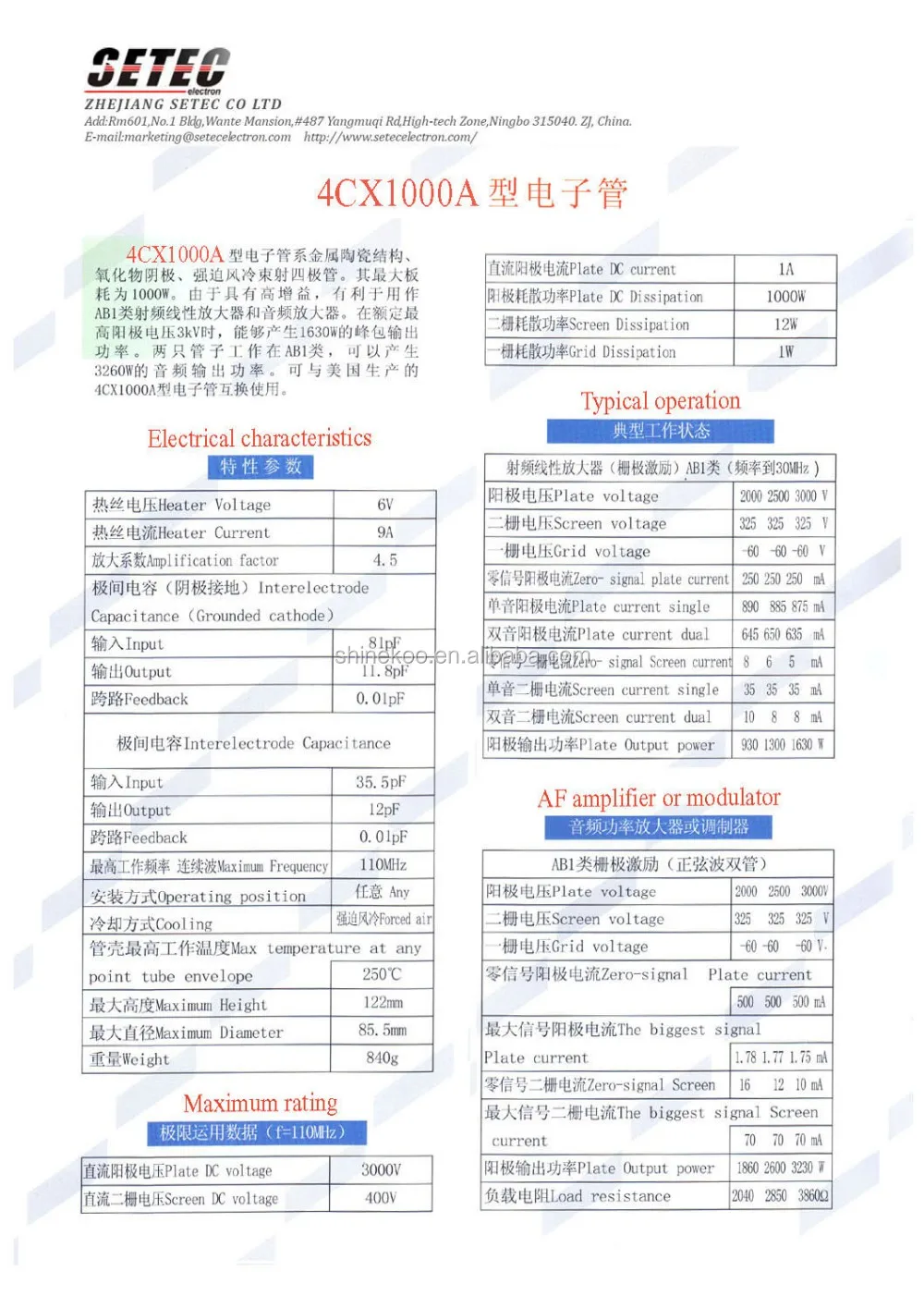 | Model Number: | 4CX1000A; | Place of Origin: | Zhejiang China (Mainland); |