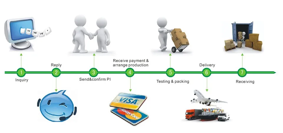 4. We confirm the payment, and arrange the order for you, will ship out the goods within delivery date.