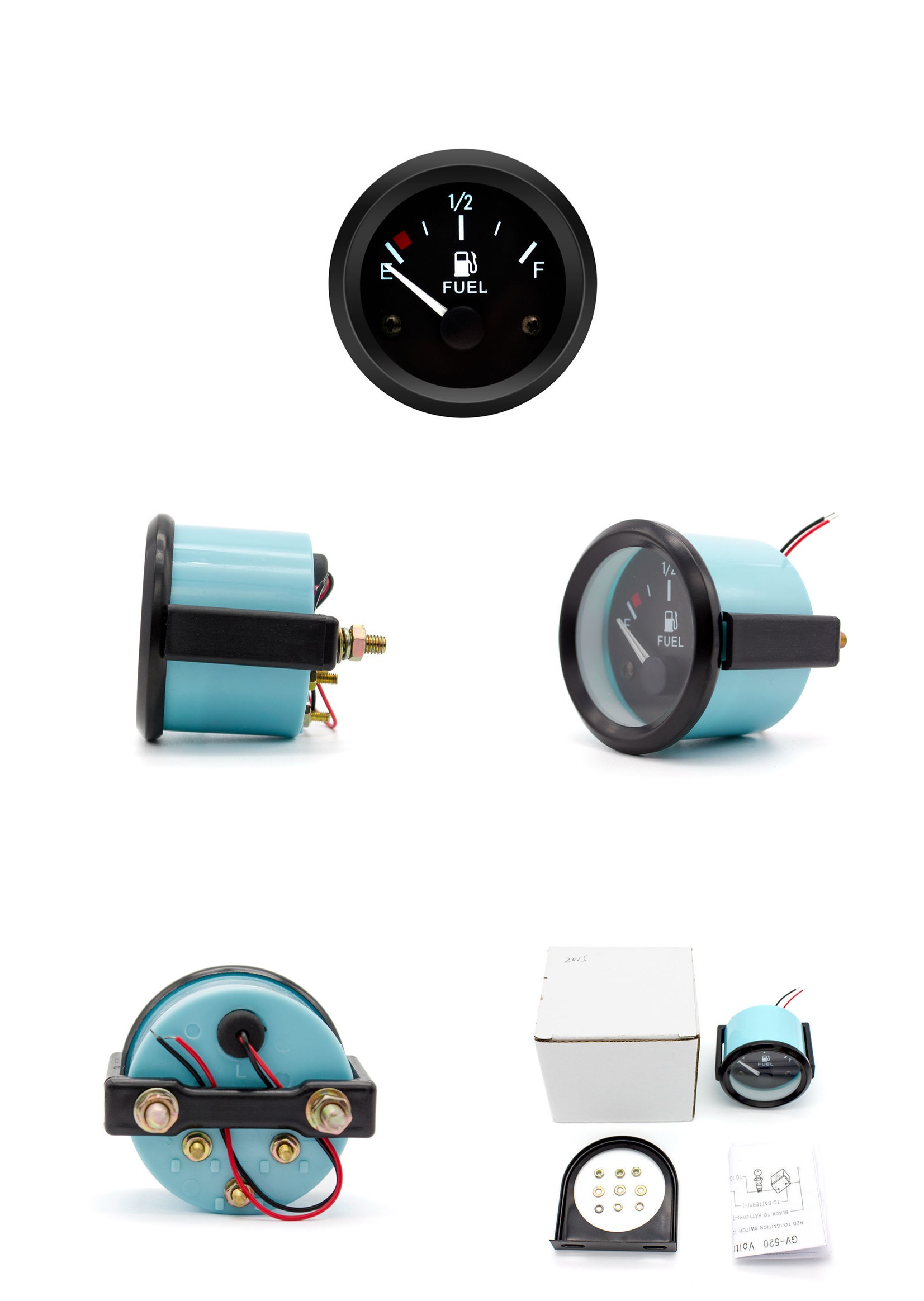 Specification:Name: Fuel Gauge Diameter: 52mm/2" Measuring Range: 0~1 Lighting: White Light Power Supply: 12 V Shell: Green Shell Outer Ring: Black Ring Material: Plastic Net Weight: 150g Package Size: 90×72×75