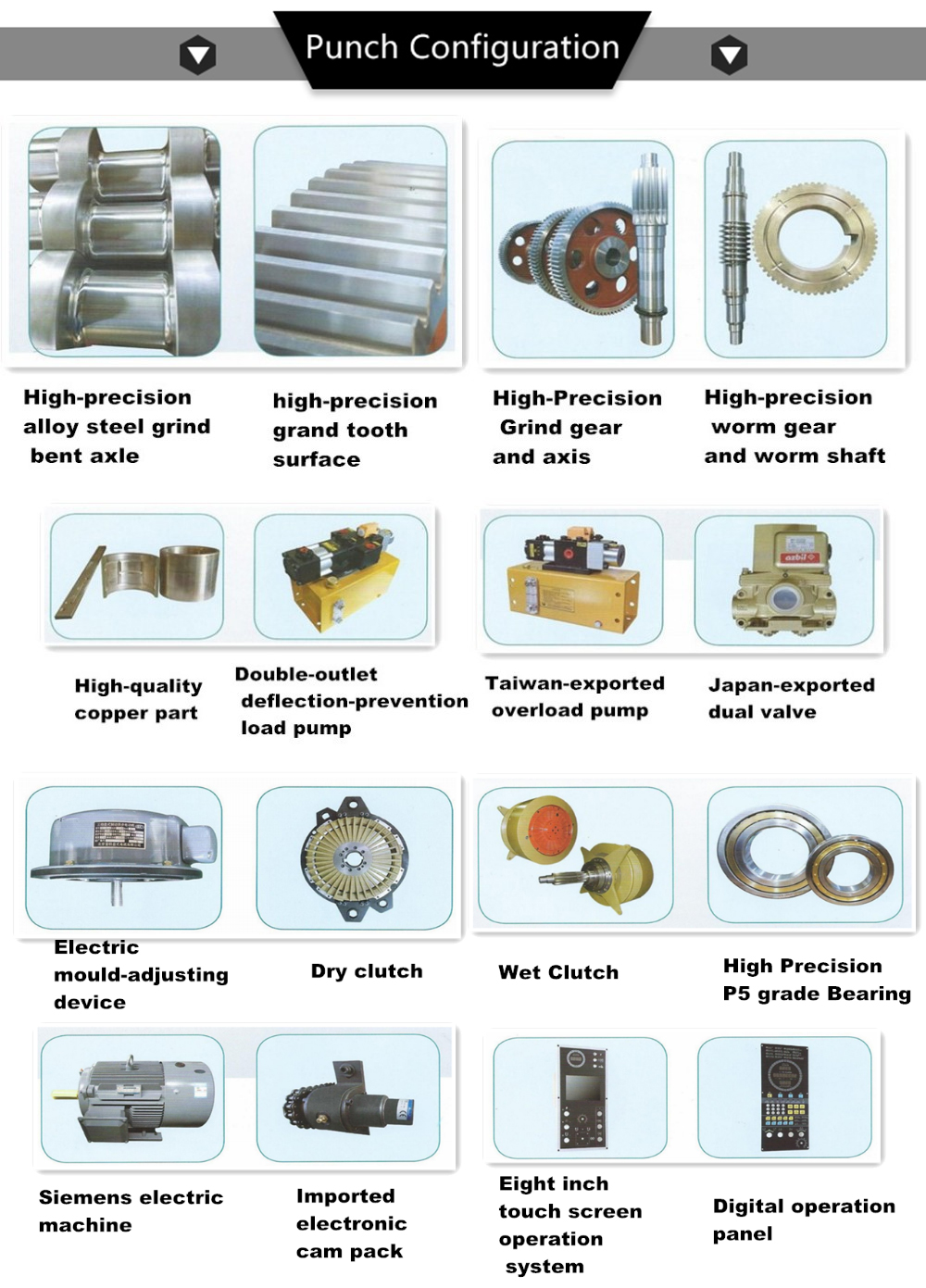 5. Adopt reliable high-strength clutch/brake and double solenoid valve, overload protector to ensure safe production