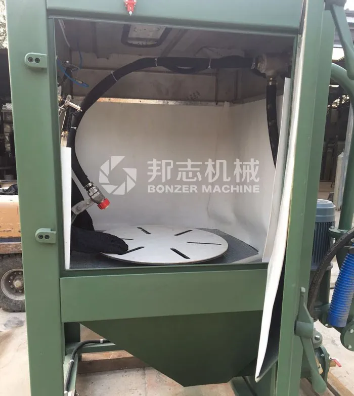 b. It is suitable for cleaning the rough surface of the precision castings, removing the oxide scale, removing the micro-burr of the machined parts, cleaning the dirt and rust stain of the oil-stained parts, decorating the surface, Surface processing, improve the performance of the use of mechanical parts and other small parts of the single-piece, small batch sandblasting processing.