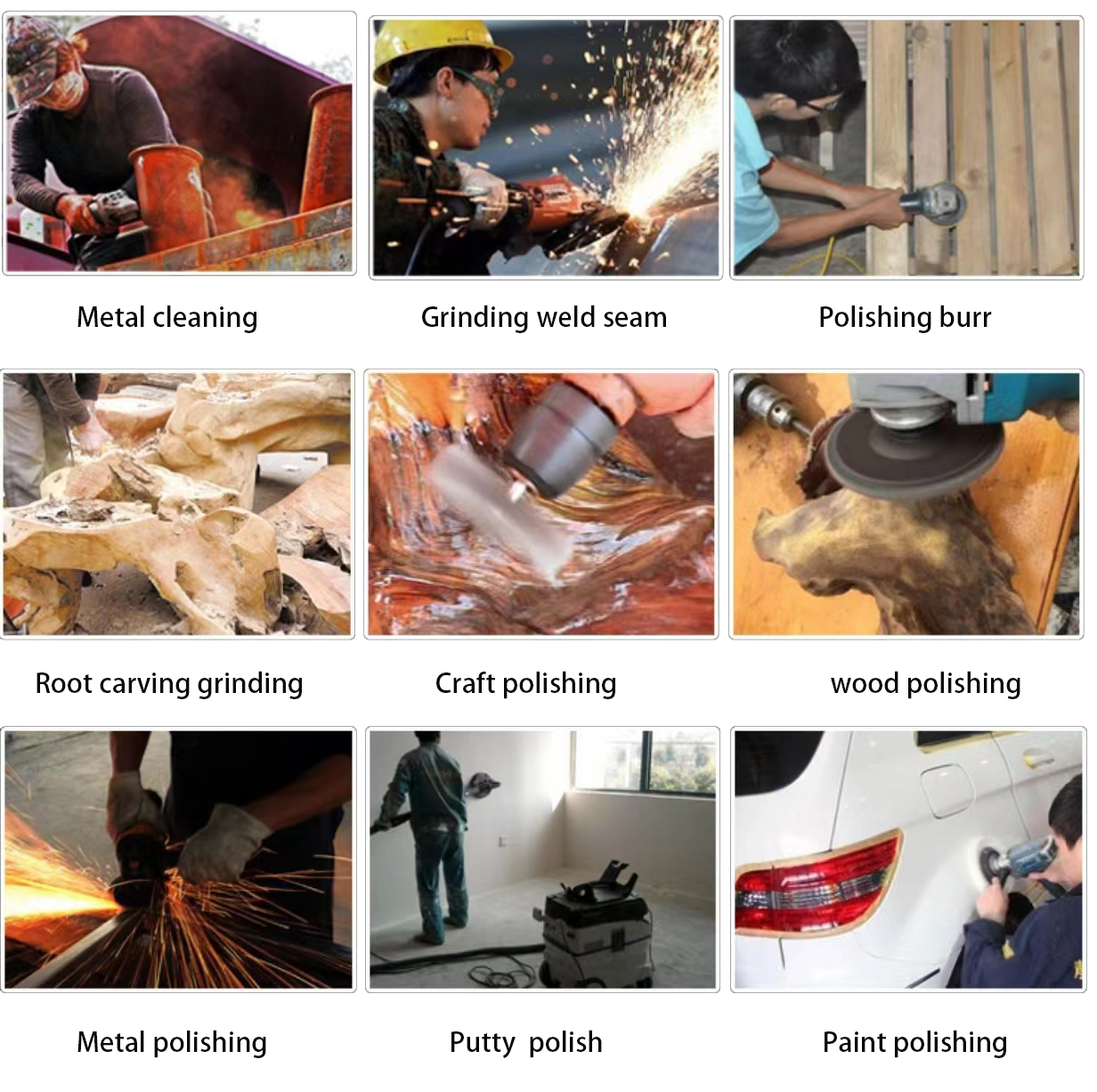 It is suitable for grinding, rust removal and polishing of various irregular surfaces and ordinary planes. widely used in automobiles