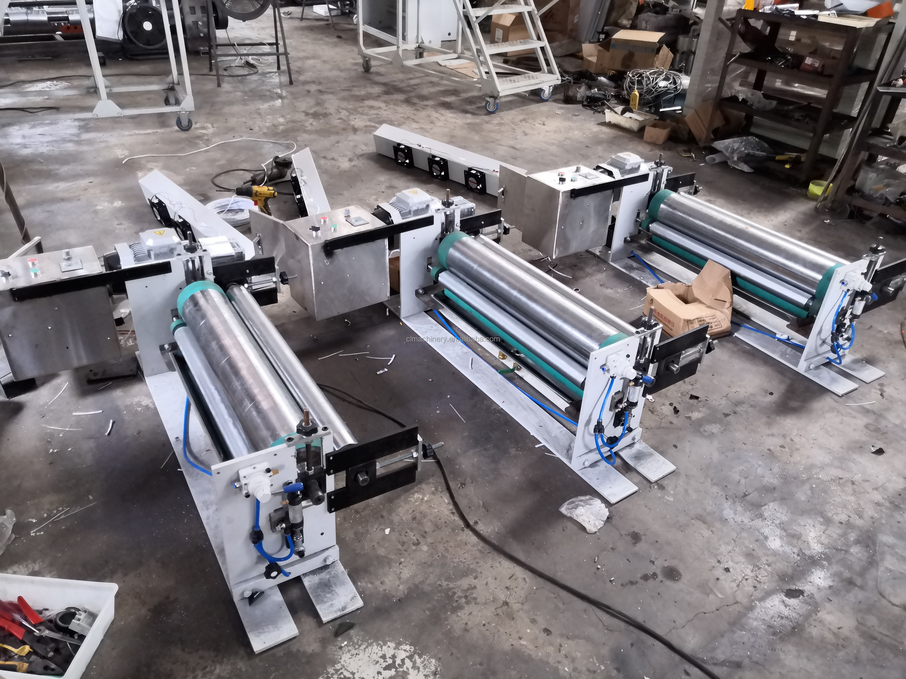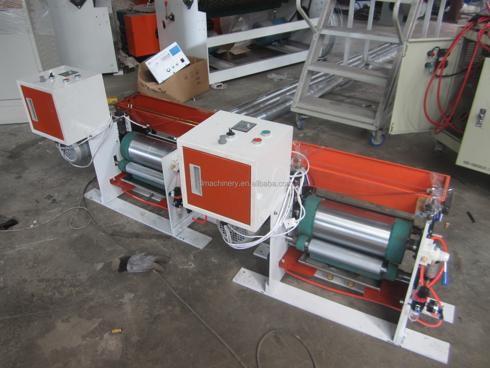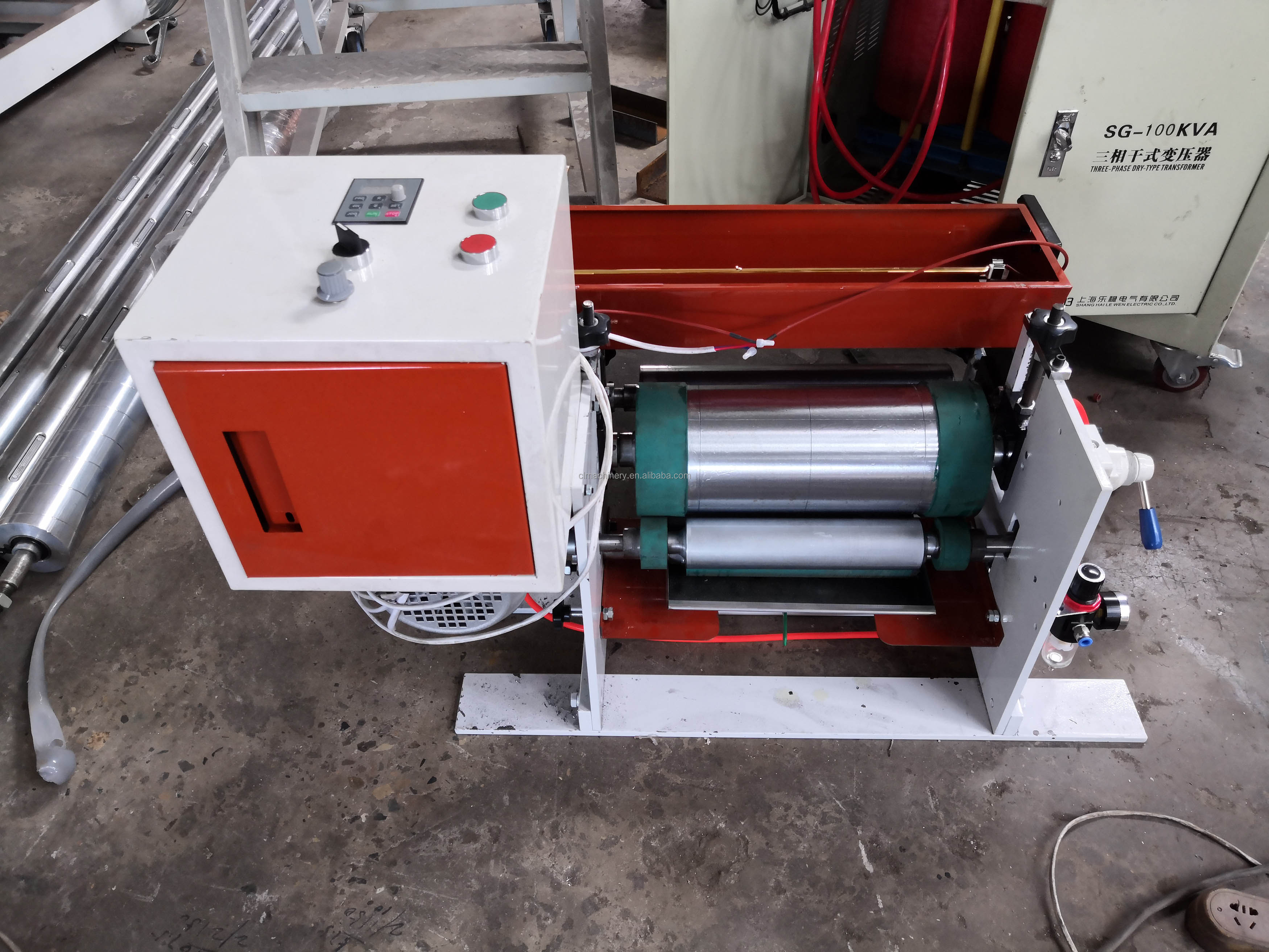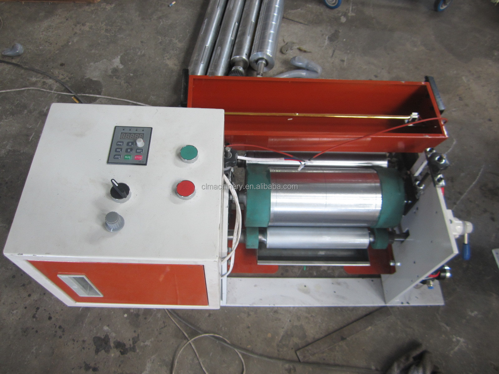 This flexographic printing machine is designed to be installed on a blown film machine to print logos or small pictures directly on the film.