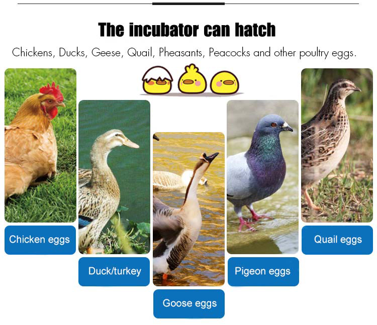 It is suitable for household and professional households to hatch chickens, birds, ducks, geese, etc. The incubator is produced through strict CE testing and enjoys a good reputation among farmers in rural areas, especially in Eastern European countries.The incubator has the characteristics of strong practicability, convenient operation and long service life.