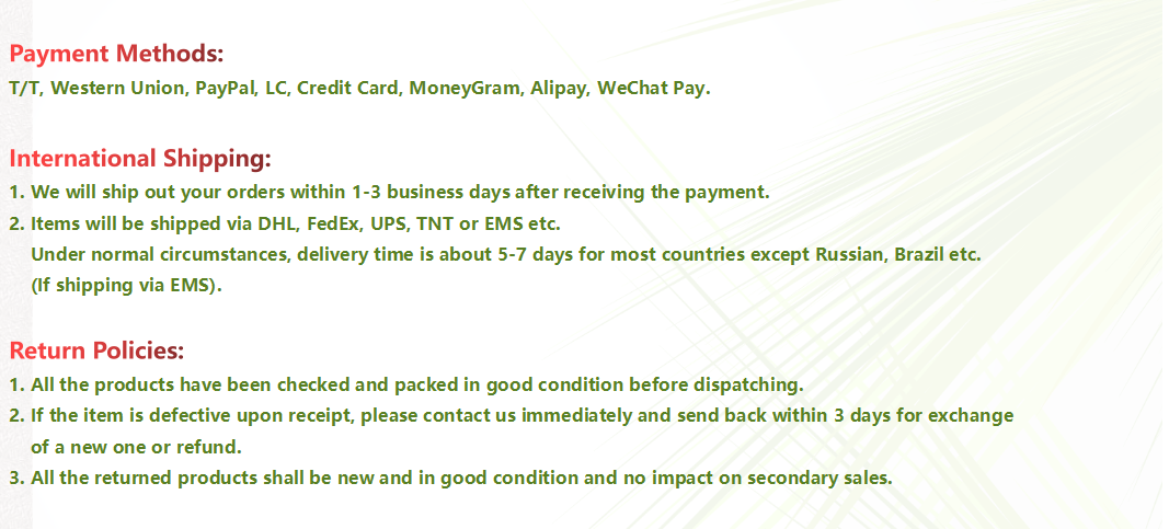 | Supply capacity: | 10000 pieces per month | payment terms: | Western Union, T/T, MoneyGram, PayPal |