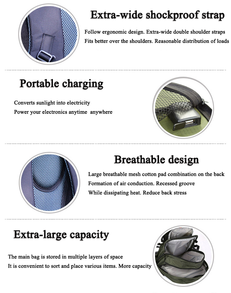 What is the purpose of the solar backpack? | Solar backpacks are a great way to reduce your environmental impact, and they allow you to charge your devices using solar energy. This means you don't have to use electricity from the grid. This reduces your carbon footprint and helps you save on energy bills. |