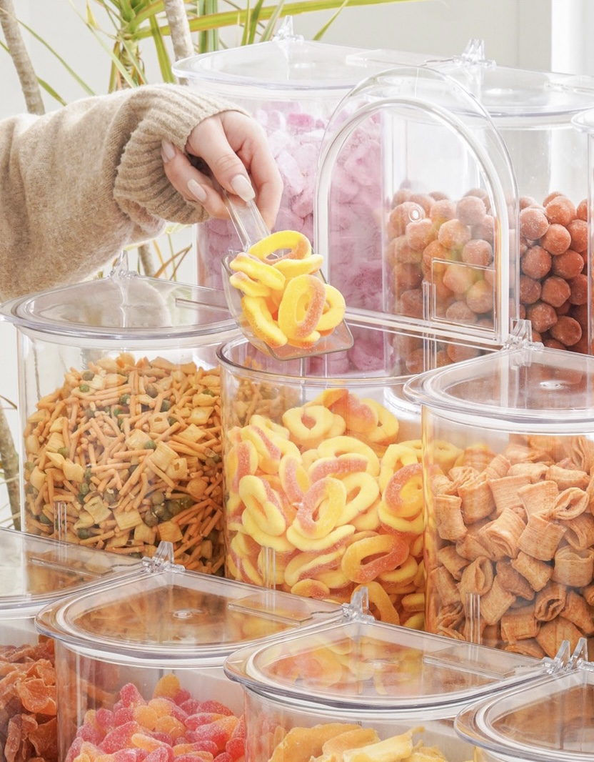 Store food items such as candy, nuts, coffee beans, cereal, grains, and more. |